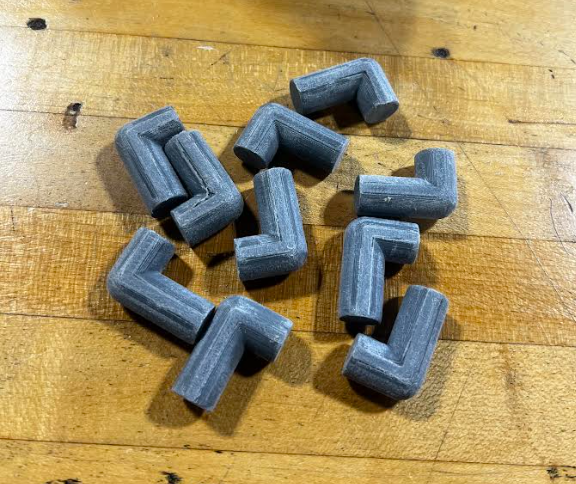 I also designed hooks for the medals to hang on. I tested my initial design for the hanger, and it was a perfect size. After doing this, I printed out 9 more hooks for a total of 10 hooks for her to hang her medals on. The first time I attempted to print it, the print failed. Luckily, the print succeeded on my second try.